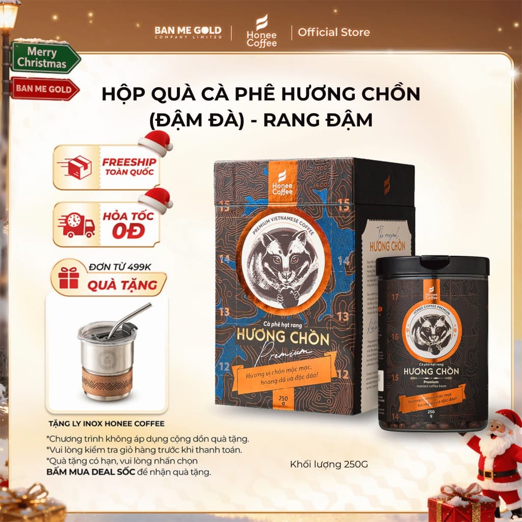 Experience the luxurious taste of our premium Honee Coffee! ☕ Indulge in a carefully curated coffee gift set that elevates any occasion with its sophisticated packaging and rich flavors. Key Benefits ✅ • Exquisite mixture of 90% premium Culi beans and 10% authentic Civet coffee. • Rich, smooth flavor with a balanced sweetness, leaving a lingering elegance. • Ideal for coffee connoisseurs seeking diverse tasting notes. Features 🌟 • Coffee sourced from the renowned regions of Lam Dong & Dak Lak, known for exceptional quality. • Includes a premium Inox 304 filter for an authentic Vietnamese brewing experience. • All-natural, with no additives or artificial colors, preserving the genuine coffee flavor. Specifications 📌 • Roast Level: Medium. • Processing Method: Honey Processing. • Grind Size: Medium, slightly fine. • Net Weight: 100g. • Shelf Life: 24 months from the production date. • Made in Vietnam by Ban Me Gold, certified to international ISO 22000:2018 standards.