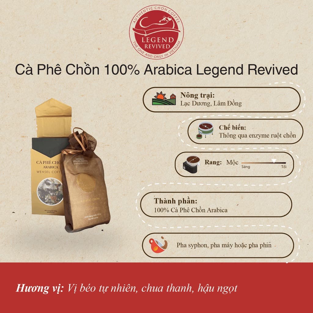 The Arabica Weasel Coffee from Lac Duong is processed through a natural digestive fermentation in civets, a method that softens bitterness and enhances sweetness and aroma. This process contributes to the coffee’s natural creaminess and bright acidity, making each cup both smooth and vibrant. The medium roast preserves the beans’ delicate nuances, including hints of cocoa and chocolate, complemented by a sweet, lingering aftertaste. This distinctive profile makes the Arabica Weasel Coffee a favorite for brewing Vietnamese phin, pour-over, or immersion styles. For more details, explore View product.